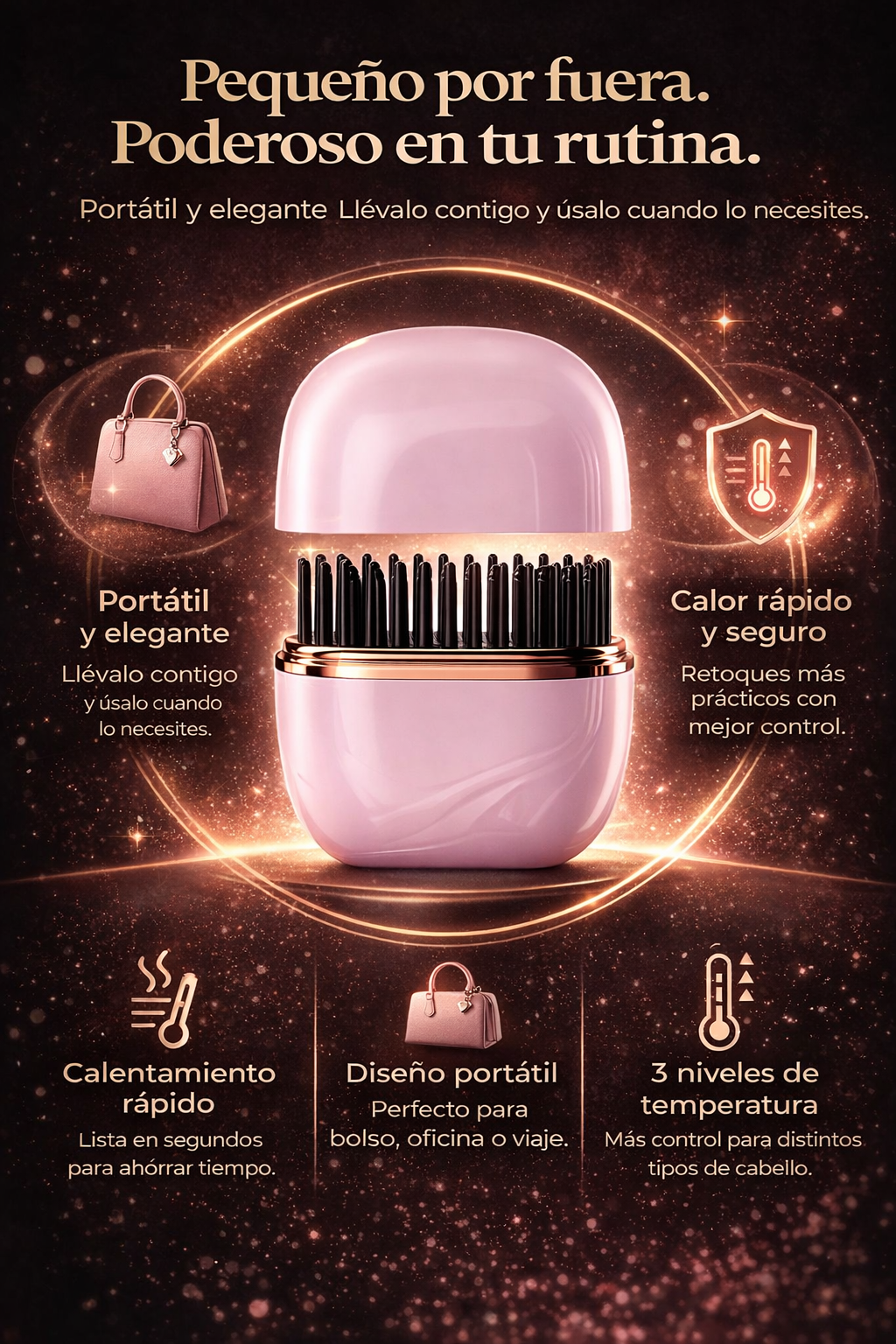 Producto perfecto, se calienta lo suficiente para alisar el cabello rápidamente. Ideal para llevar de viaje y mantener el cabello impecable en todo momento.